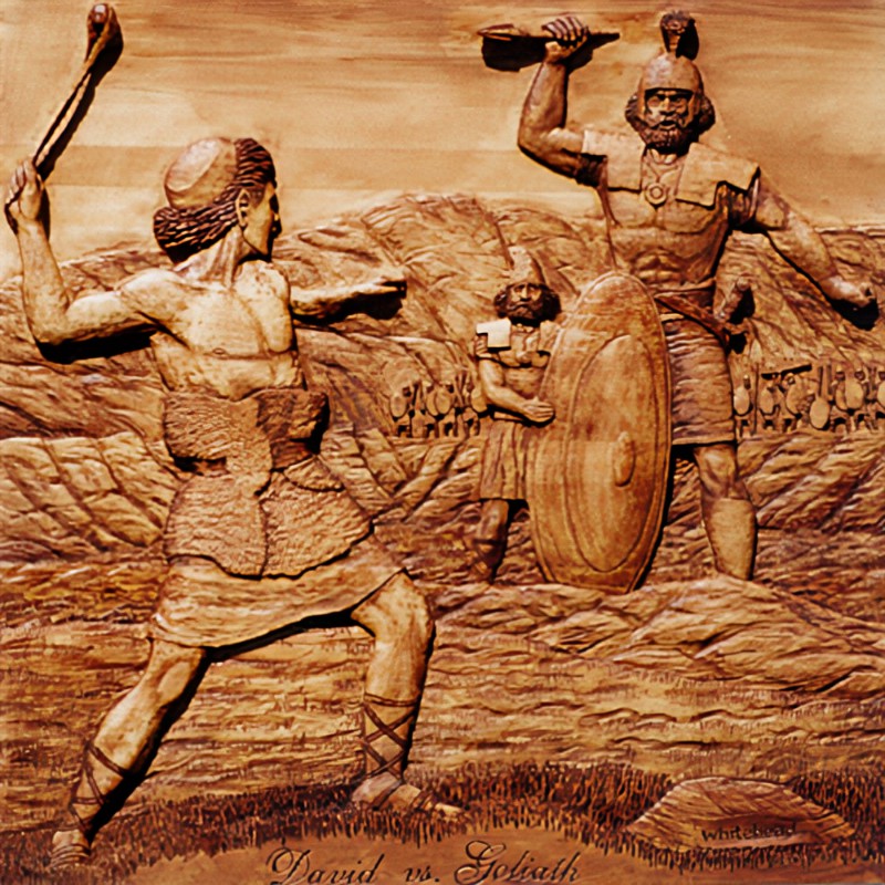 David didn’t have modern weapons in his hands. He didn’t roll up in an armored Humvee and hop out with a Kevlar vest and a machine gun.