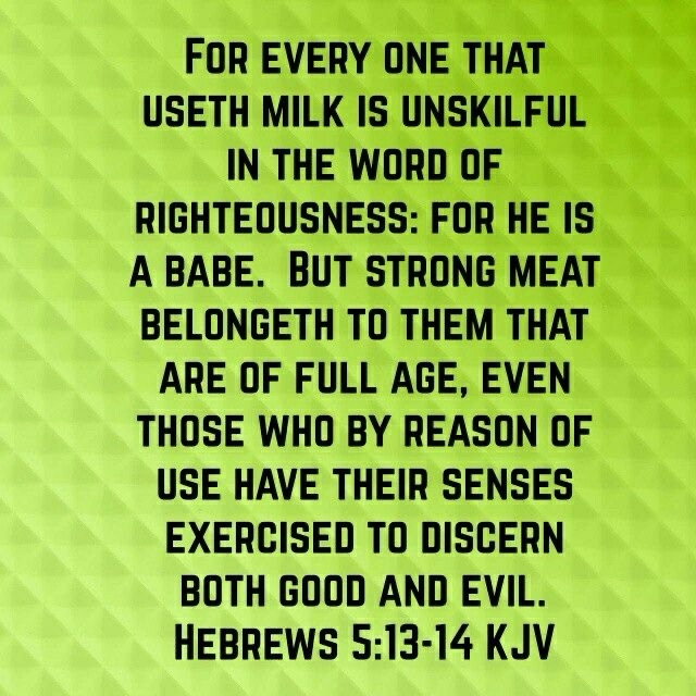 See the difference? We can say that we have good discernment as Christian soldiers, but if we’re not saturated in the Word of Truth then it’s not true. Read your Bible and pray that God will saturate your mind with Truth so that you can learn to quickly discern what is righteous from what is evil. Strive to be a mature Christian soldier even if the church is filled with immature, milk-drinking babes in Christ.