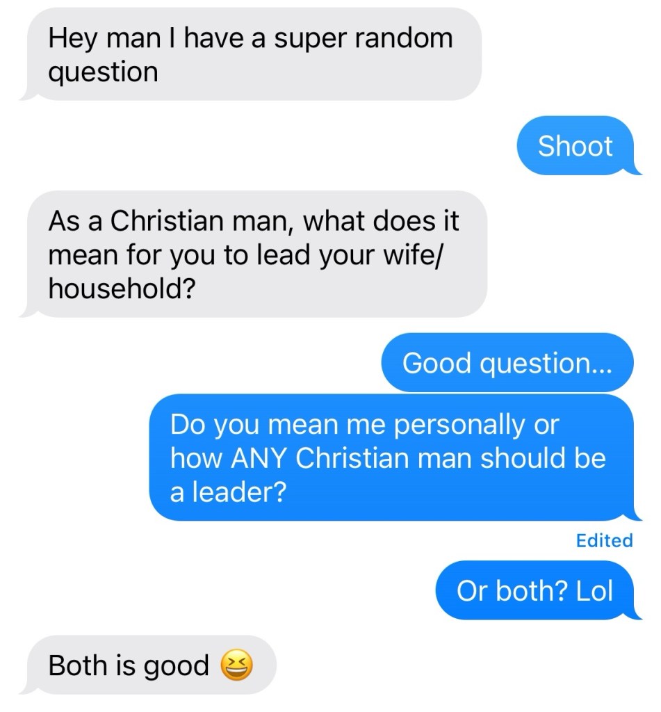 #1 God’s Order – If I’m not devoted to Christ, I’m just pleasing myself and I can’t run a household or lead like that. My leader in marriage has to be Jesus Christ, and Rachel’s head in marriage (for final decisions, human leadership) is me as long as I’m following Christ. If I stray from following Christ and start to lead/make decisions in a wicked or immoral way, she’s under no obligation to submit to my poor and ungodly leadership.